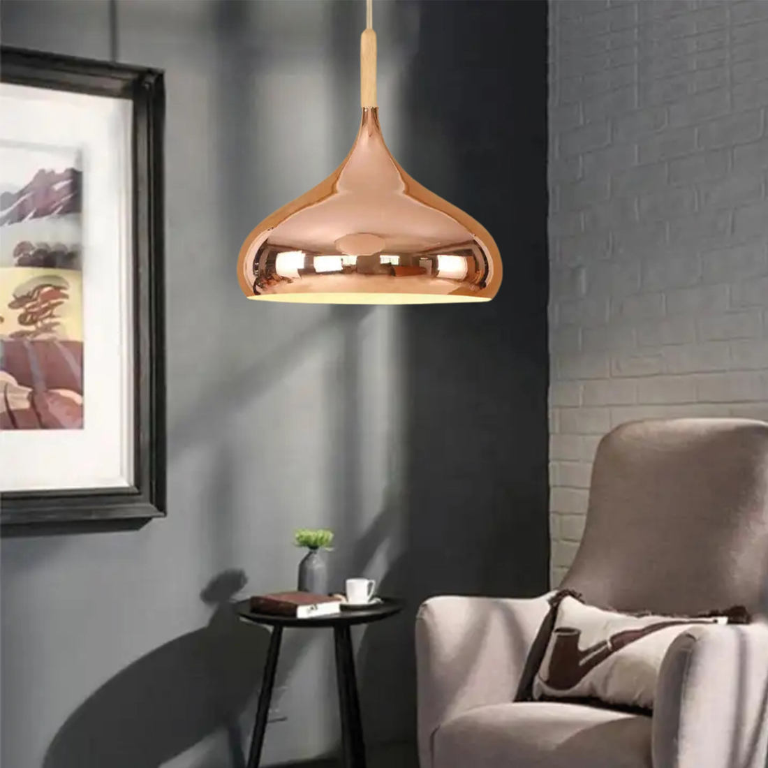 Lámpara colgante para ampolleta rosca normal, especial para decorar tus espacios interiores.