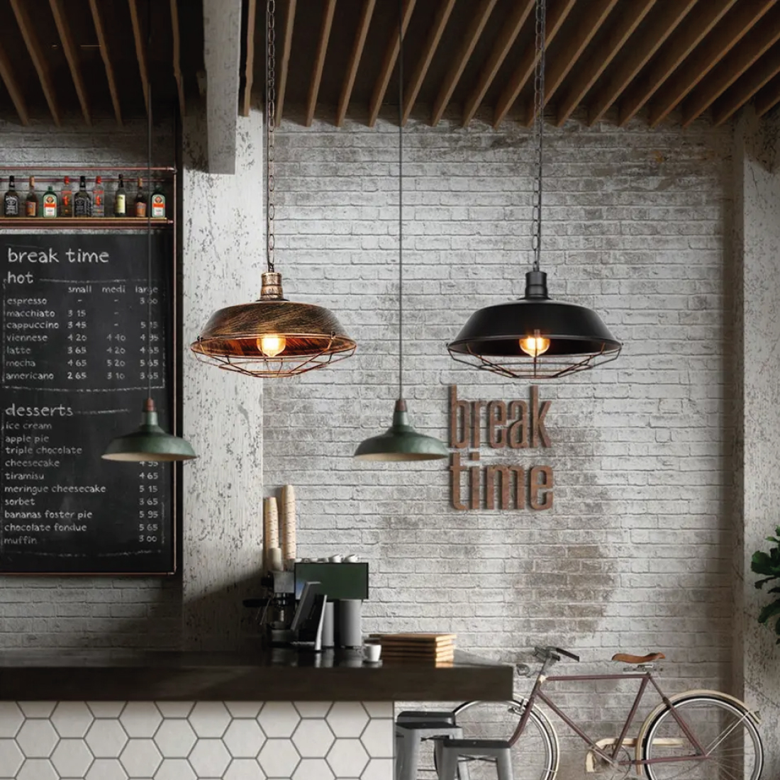 Lámpara colgante estilo industrial para ampolleta rosca normal, ideal para utilizar ampolleta de filamento LED.